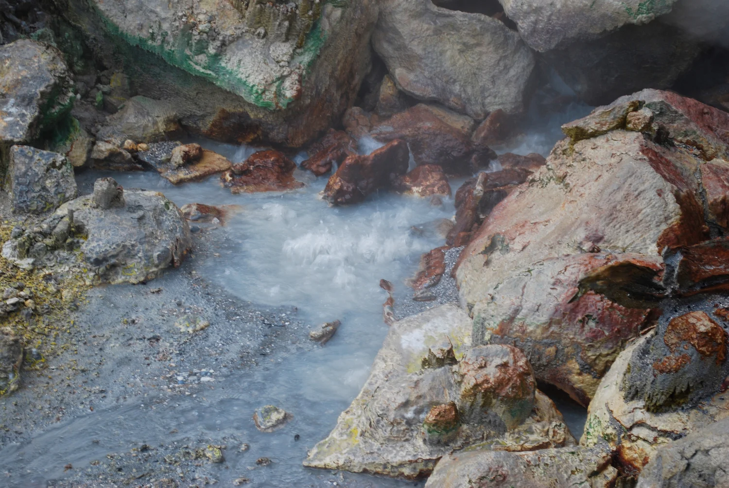 Magnificent. That’s the word. We emerged amid the din of sulfur-spewing vents, gurgling pools of boiling clay stew, steam-veiled stream water, and a monkey troupe vociferously protesting our trespass. Just one of those times. One of those times when you’re so overwhelmed, so inundated by nature’s grandeur, you feel you might burst from the overload. (Drug overdose?) I know, I know… take another bong hit, Billy. But it really was something. (Insert “You just had to be there” cliché.)