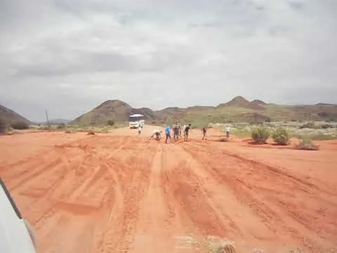 Leslie returned with two burly, knaggy Namibian gentlemen and their 4x4. They were kind enough to connect a rope and pull Sparky to freedom. They also gave me sound advice, which amounted to “don’t drive like a fucking pussy” and assured us if we had another problem, we’d likely meet their father up ahead who’d be happy to free us. Thankfully, his services were unnecessary.
